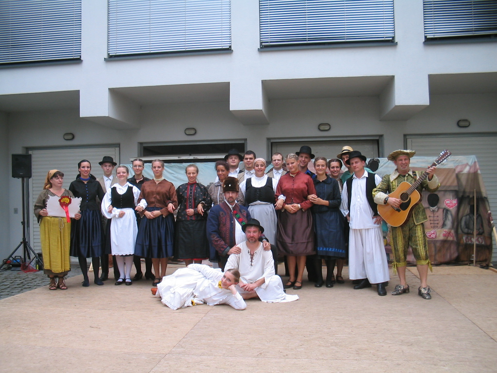 A TÉBLÁB Táncegyüttes táncosai a SzeptEmber Feszten, IX. 6-án 11,30-kor a Ludas Matyi című vásári komédiát mutatják be az érdeklődő közönségnek. |