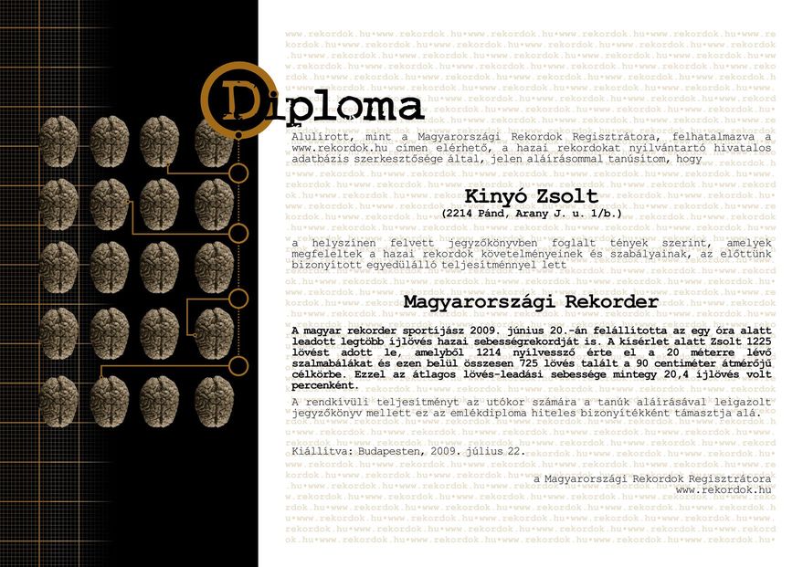 Az irodalom területét sem kímélik a rekordkísérletek. Pászti Péter kalligrafikus művész alkotásai, Zé Zsankó József remix-versei érdekes színfoltot jelentenek a színpadon, ahol további, korábban sikeres rekordkísérlet megvalósítójának nyújtjuk át ünnepélyesen az erről szóló diplomát. |