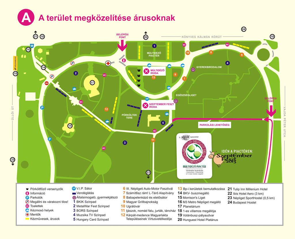 A Kitelepülési Engedéllyel rendelkezők a képre kattintva elérhető térképen jelölt belépési pontokon keresztül tudják megközelíteni az árusító helyüket. A területen gépjárművel tartózkodni szeptember 6-án (pénteken) 16.00-ig, szeptember 7-én (szombaton) és szeptember 8-án (vasárnap) 6.30-tól 8.00-ig, illetve 18.00-tól lehet.